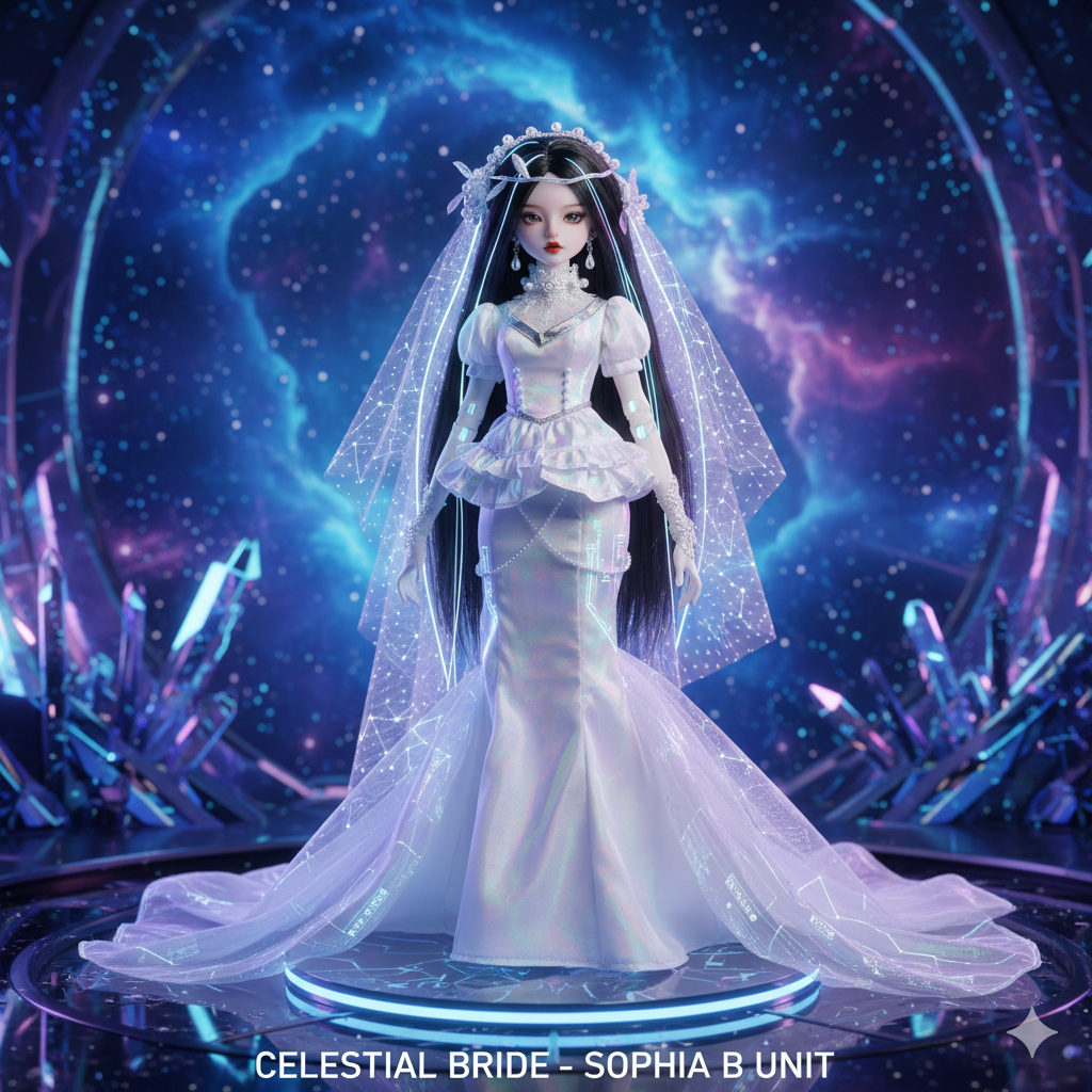 Step into a new dimension of doll collecting with the Sophia B: Celestial Bride Edition. This isn't just a BJD; it’s a masterpiece of bionic art. Inspired by the concept of "Digital Soul," we’ve reimagined the classic Eastern retro bride into a high-tech visionary icon.