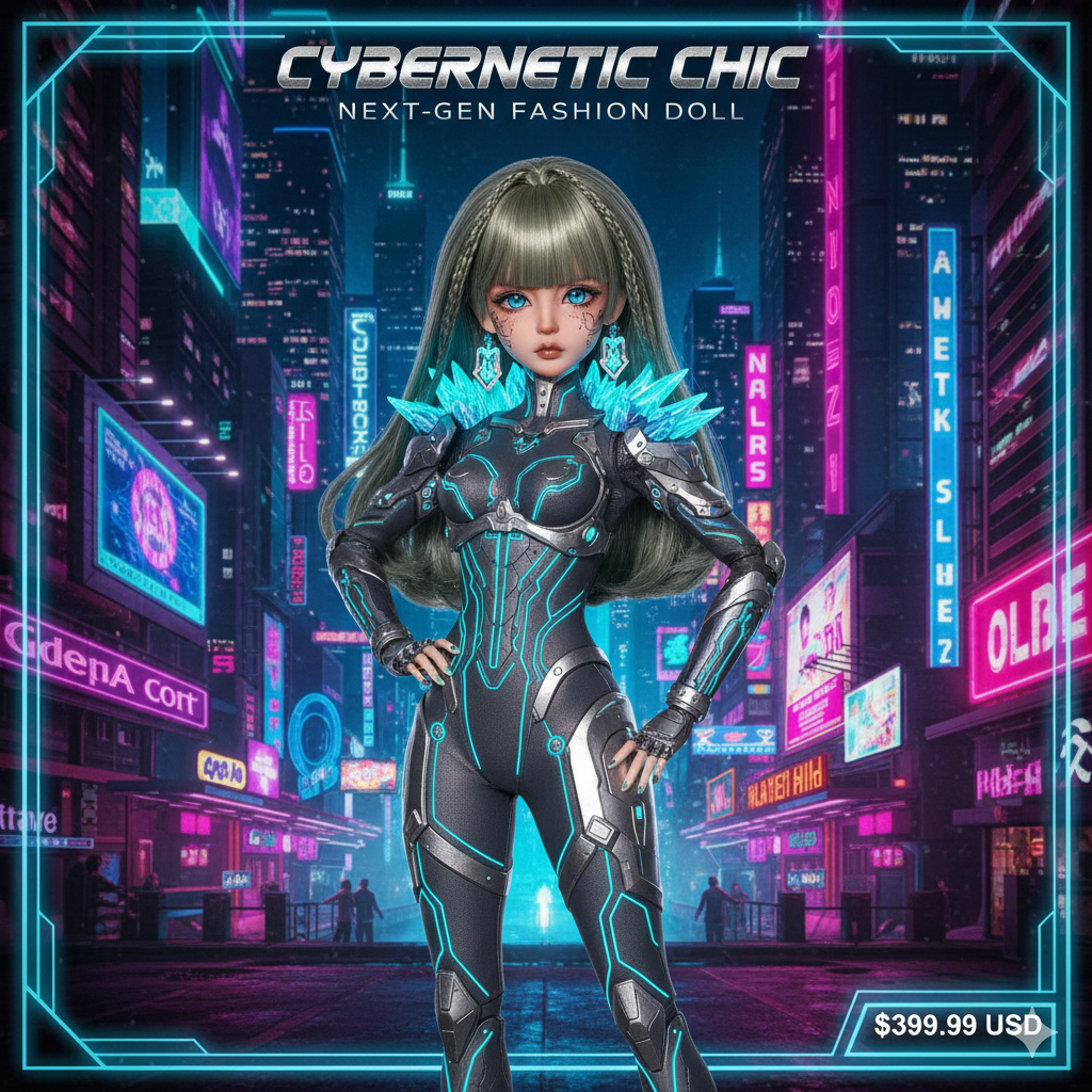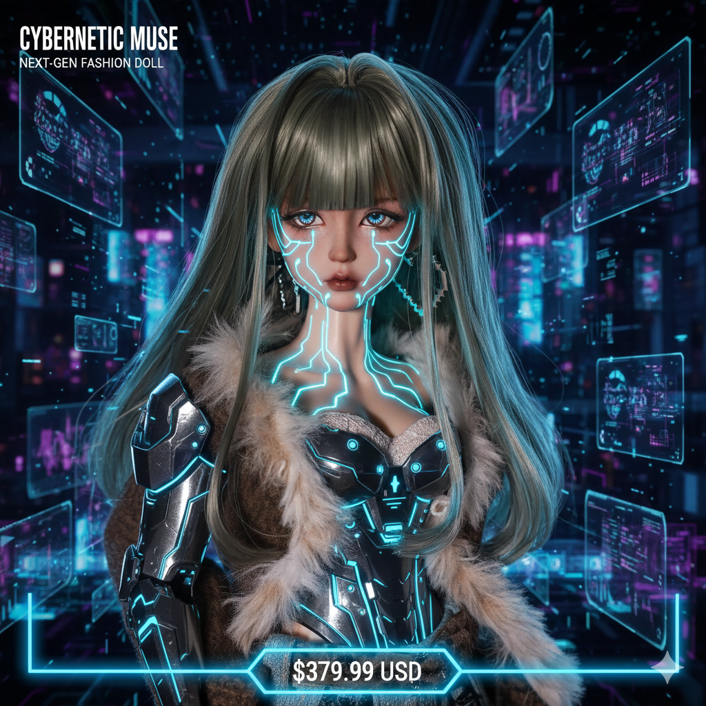 Digital Art in Physical Form: Inspired by AI-driven futurism, this doll is the perfect centerpiece for tech-themed interiors or trend-setting collection cabinets.